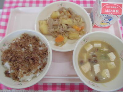 本日は、和食献立でした。エコふりかけは、なめこ汁で使用した出汁取り用の薄削りの鰹節を、フードプロセッサーで細かくし、さとう・みりん・しょうゆで味付けしました。大人気のエコふりかけがある日は、カレーの日に負けないくらい「ごはん」がよく進みます。本日も全学年で残食はほぼありませんでした。