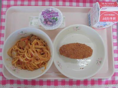 スパゲッティナポリタン 牛乳 コーンフライ グレープゼリー