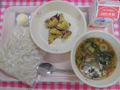 イタリアのナポリはトマト料理が有名な為、生トマトやケチャップを使ったトマト風味の料理に「ナポリ風」を意味する言葉をつけるようになったそうです。1年生も食缶が空になって戻ってきました。