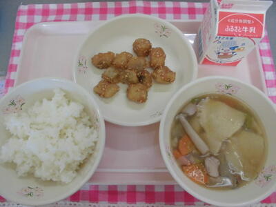 のり塩ポテトに使われている「あおさ」という海藻の仲間には、カルシウムや鉄分など、体を作るのに欠かせない栄養がたくさん入っています。給食放送では、1月21日の児童集会で実施した給食委員会の劇にも登場した「栄養戦隊3色レンジャー」を交え、クイズにしました。1階の掲示板をぜひご覧になってくださいね!