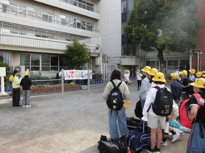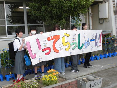 入園式。柳崎小学校の子供達との出会いの場面です。