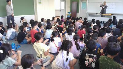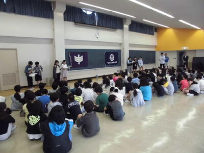 水着や帽子に名前をしっかり書くことを委員さんがわかりやすく伝えてくれました。
