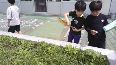 3年生の理科の授業でホウセンカを育てています。先週の理科の時間に観察を行いました。ぐんぐん伸びていて、1番大きいホウセンカは18㎝も高さがありましたね。葉の高さや数、大きさ、色、形を調べて分かったことを観察カードに書きました。花が咲いた後も観察し、今回の観察と比べてみてくださいね。