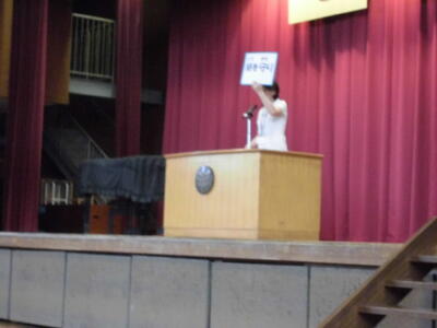 6月全校朝会は、「時を守り 場を清め 礼を正す」をとり上げました。