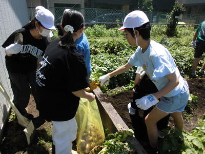 美化栽培飼育委員がジャガイモ掘りをしました。