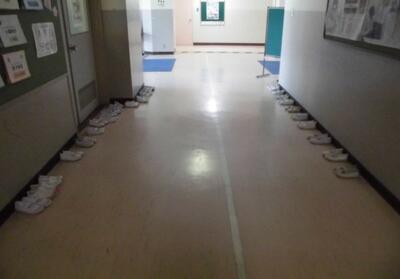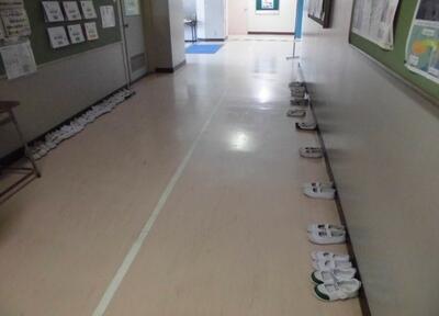何人かが、両手で靴のかかとをそろえて上履きに履き替えていました。