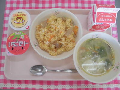今日は、みなさん大好きな豚キムチチャーハンでした!マイルドな辛さの中に卵の甘みがキムチのシャキシャキ感、豚肉のうま味を楽しめる一品になりました。お皿いっぱいに盛り付けられたチャーハンを嬉しそうに頬張る子どもたちをたくさん見ることができました。チャーハンとの組み合わせが最強なトックもとてもよく食べていました。そして、一番楽しみにしていたのはセレクトデザートですね!!南鳩ヶ谷小はプリンを選んだ人が多かったです。楽しみがたくさんある給食もたまに出ると嬉しいですね♪