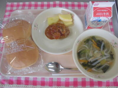 子供パン 牛乳 ハンバーグデミグラスソース フライドポテト ヌードルスープ