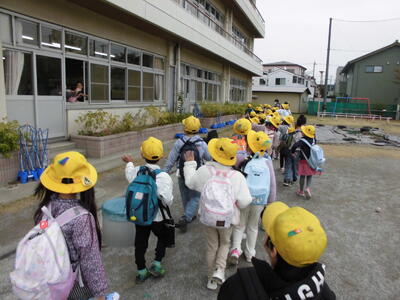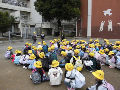 2年生の先輩が、1年生とはぐれないように、声をかけ、手をつなぎ、優しさいっぱいのグループ学習でした。