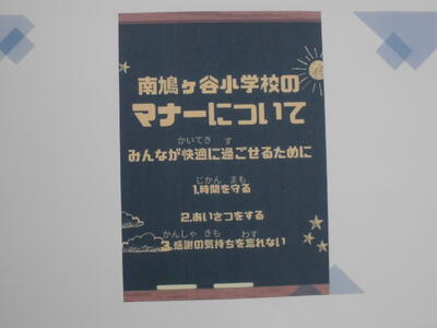 うれしい気持ち、思いやりの心で安心できる南鳩ヶ谷小学校にしていきましょう。