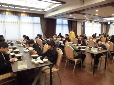 外は雪模様でしたので、食事の後、退館式を行いました。