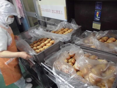 パンを揚げ、きなこをまぶして、一つ一つ指差し確認で数えていく。