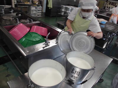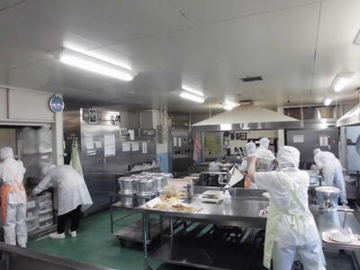 南鳩ヶ谷小の給食調理室、密着取材です。