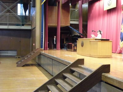 最終日は、事前に準備してきた中学校紹介を5、6年生対象に説明しました。