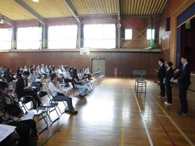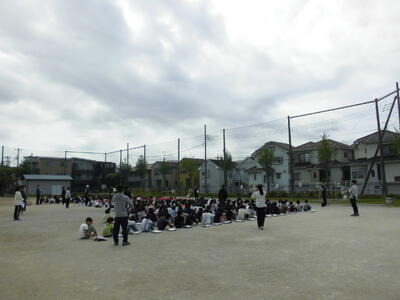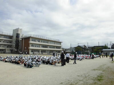 1年生も参加し、並び方、立ち方、回れ右、体操隊形等々、全員で確認し合いました。