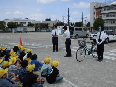 道路での歩行や信号機の見方、道路横断の仕方など、教わりました。