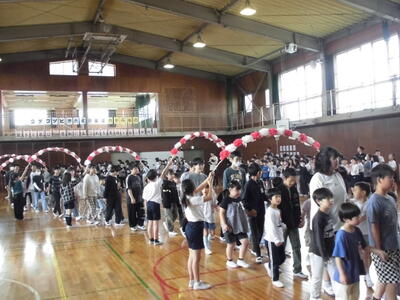 全校クイズや1年生へのプレゼントなど、6年生が1年生の手を引いて入場、退場など、心あたたまる場面がたくさんありました。